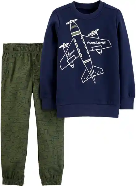 Conjunto de 2 Unidades. Confeccionado en un Cómodo Forro Polar Con Gráficos de Aviones; Este Top Combina Perfectamente Con Unos Pantalones de Popelina a Juego.