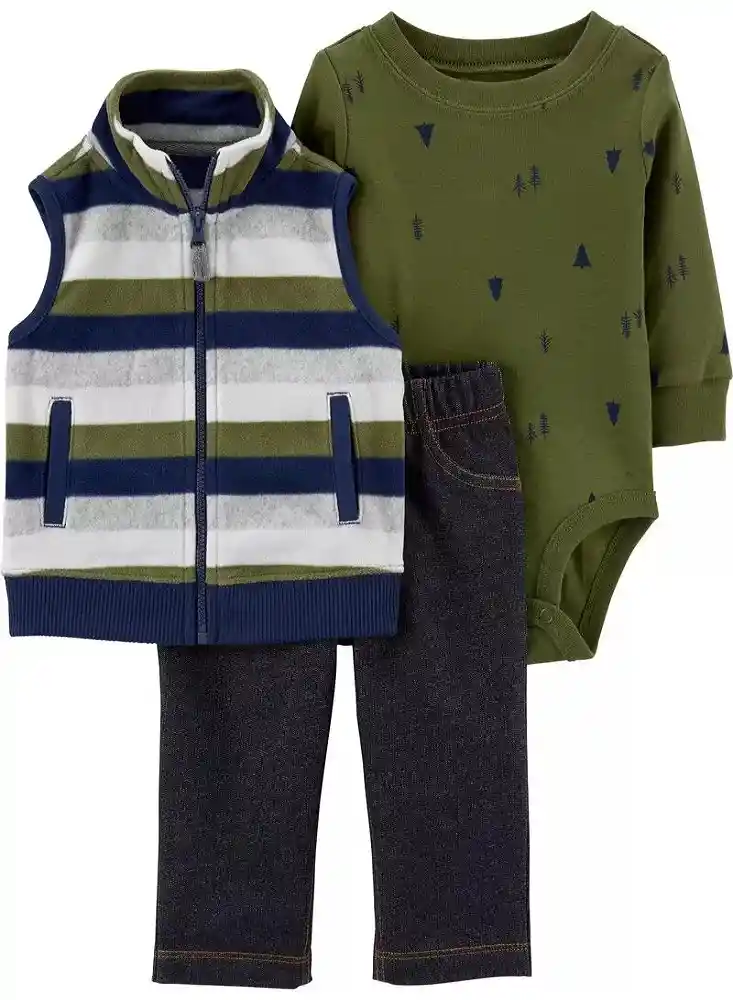 Conjunto Incluye Carter's Chaleco 1 Und + Carter's Pantalón 1 Und + Carter's Body 1 Und. El Atuendo Perfecto; Este Conjunto se Completa Con un Body de Manga Larga; Pantalones Sin Cordones y un Chaleco de Lana Para Completar el Look.