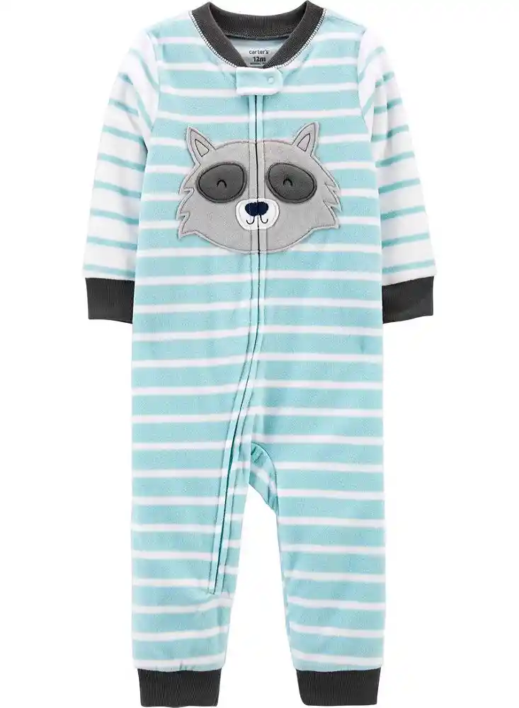 Confeccionado en un Cómodo Vellón; Este Mono de Una Pieza lo Lleva Desde la Hora Del Juego Hasta la Hora de Acostarse en Muy Poco Tiempo. El Diseño Con Cremallera Permite Cambios Rápidos y Fácil de Vestir. ¿Tratado Químicamente? ¡De Ninguna Manera! el Poliéster de Carter es Resistente al Fuego ... ¡Uf!