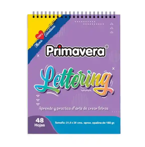 Cartilla primavera Lettering. Aprende y practica el arte de las letras. 48 hojas de tamaño 21,5 x 28cm Hojas opalina de 180 gr