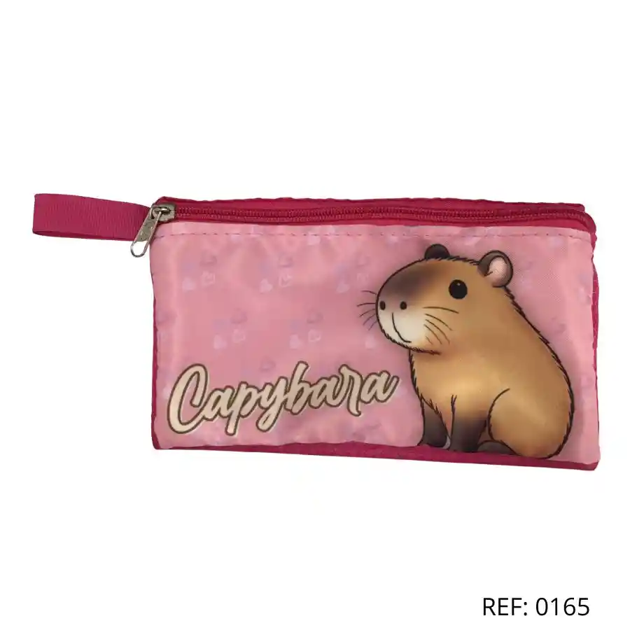 Cartuchera rosada de dos depósitos con diseño de capibara. ¡Tierna, práctica y perfecta para organizar!
