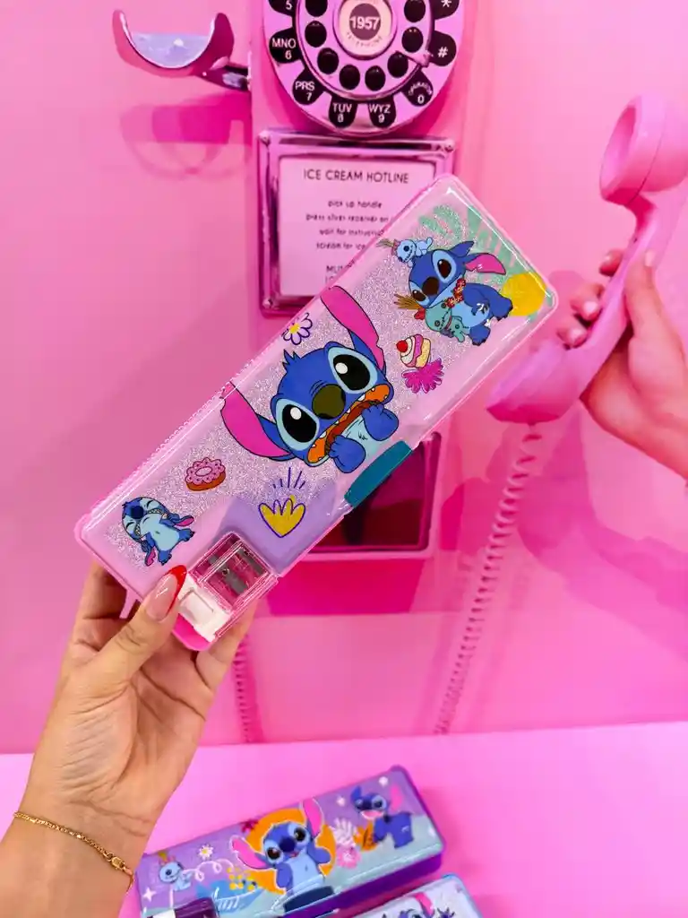 Esta hermosa cartuchera con brillantina de Stitch rosada es el accesorio perfecto para quienes aman el brillo y la ternura ✨💖. Su diseño brillante y espacioso permite organizar lápices, bolígrafos y más con estilo 🖊️🎀. Fabricada con materiales resistentes, es ideal para la escuela o el trabajo 🎒🌟. ¡Lleva la magia de Stitch contigo a donde vayas! 😍💫 Cartuchera | Stitch | Brillantina | Rosada | Adorable | Espaciosa | Resistente | Práctica | Encantadora | Original