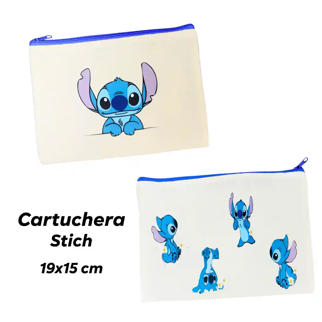 Cartuchera de Stich Azul , Tamaño 19x 15cm