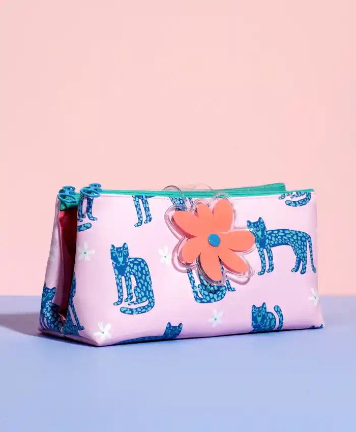La cartuchera doble es muy practica para mantener organizados tus marcadores, bolígrafos, lápices, resaltadores, asi como otros objetos u accesorios. Cuenta con dos divisiones interiores en vinilo translúcido para una rápida identificación de tus objetos. Cada compartimento tiene cierre individual y un broche externo para asegurarla. Perfecta para: Marcadores Colores Resaltadores Maquillaje Medidas: 21.4 x 9.5 x 10.5 cm