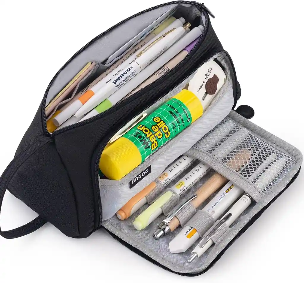 AL0000001781 DISEÑO ÚNICO Diseño de ventana frontal, puede abrir este estuche para lápices desde la parte superior o lateral, es conveniente llevar todo lo que necesita.Diseño portátil con un asa que se puede colgar y transportar, y puede caber fácilmente en una mochila, bolso de oficina o bolso.El diseño de 2 bolsillos interiores proporciona un espacio amplio para guardar notas pequeñas, tarjetas, notas adhesivas. GRAN CAPACIDAD Dimensión: 8,27” x 4,53” x 3,15” (21x11,5x8cm).El compartimento principal puede acomodar hasta 50-70 bolígrafos/lápices y puede almacenar artículos de papelería pequeños en los bolsillos laterales. Hay 5 ranuras en la ventana frontal, puede colocar algunos bolígrafos más cortos para su aprendizaje y necesidades diarias. MATERIAL DE ALTA CALIDAD Este gran estuche para lápices está hecho de tela Oxford de alta calidad que es un material seguro, también es lavable y resistente al desgaste, duradero de usar.2 cremalleras son suaves y fuertes sin atascos, fáciles de abrir y cerrar. MULTIFUNCIÓN No es solo un estuche para bolígrafos para niñas y niños, sino también una bolsa organizadora, una bolsa de cosméticos, una bolsa de viaje, una cartera para satisfacer todas sus diferentes necesidades diarias al salir, hacer que su viaje diario sea más ordenado. UN BUEN REGALO De hecho, un regalo perfecto para estudiantes, adolescentes, amigos, escritores y artistas, regalo de vacaciones o cumpleaños, o artículos de regreso a la escuela o de viaje. (Solo estuche, lápices NO incluidos).