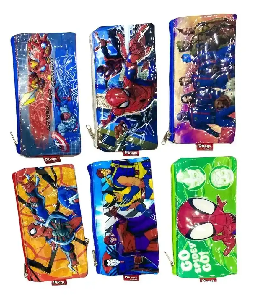 CARTUCHERA PARA NIÑO DE 1 BOLSILLO MARCA PRIMAVERA. MOTIVO SUPER HÉROES DISEÑOS SURTIDOS. SE ENVÍA DISEÑO SEGÚN DISPONIBILIDAD