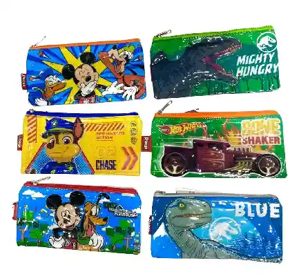 CARTUCHERA PARA NIÑO DE 1 BOLSILLO MARCA PRIMAVERA. MOTIVO SUPER HÉROES DISEÑOS SURTIDOS. SE ENVÍA DISEÑO SEGÚN DISPONIBILIDAD