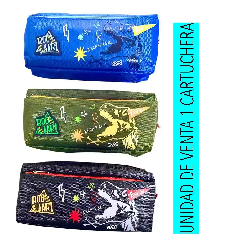 Cartuchera Para Niño 2 Bolsillos Offi Esco motivo dinosaurio OE-2240. Gran capacidad. Interior amplio y resistente para guardar todo lo que necesites, Cremallera Resistente, durable y de fácil agarre.