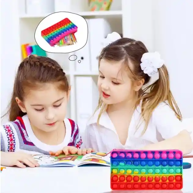 Hermosa Cartuchera para lapices o maquillaje antiestres, color arcoiris.