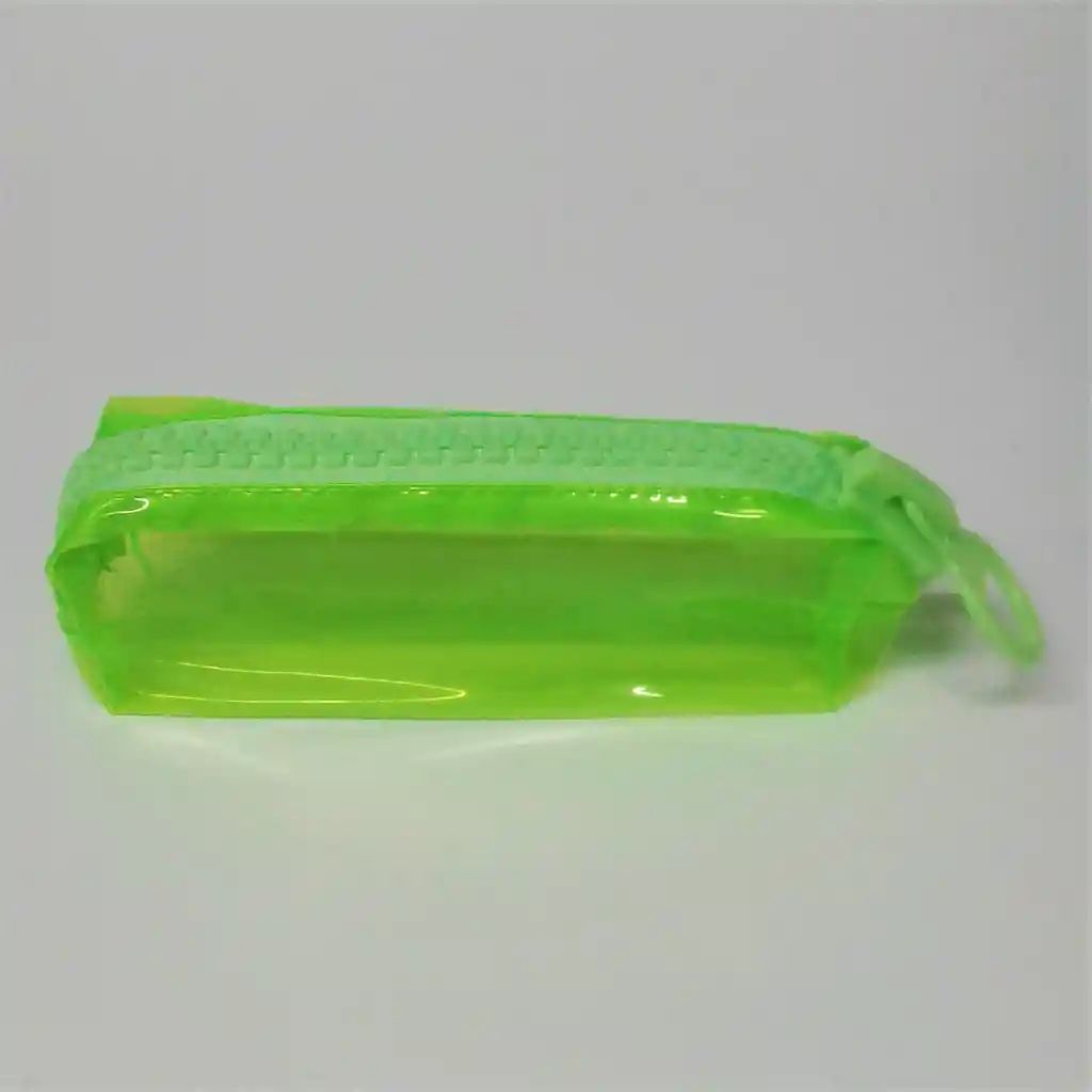 Cartuchera plástica verde transparente con cierre gigante
