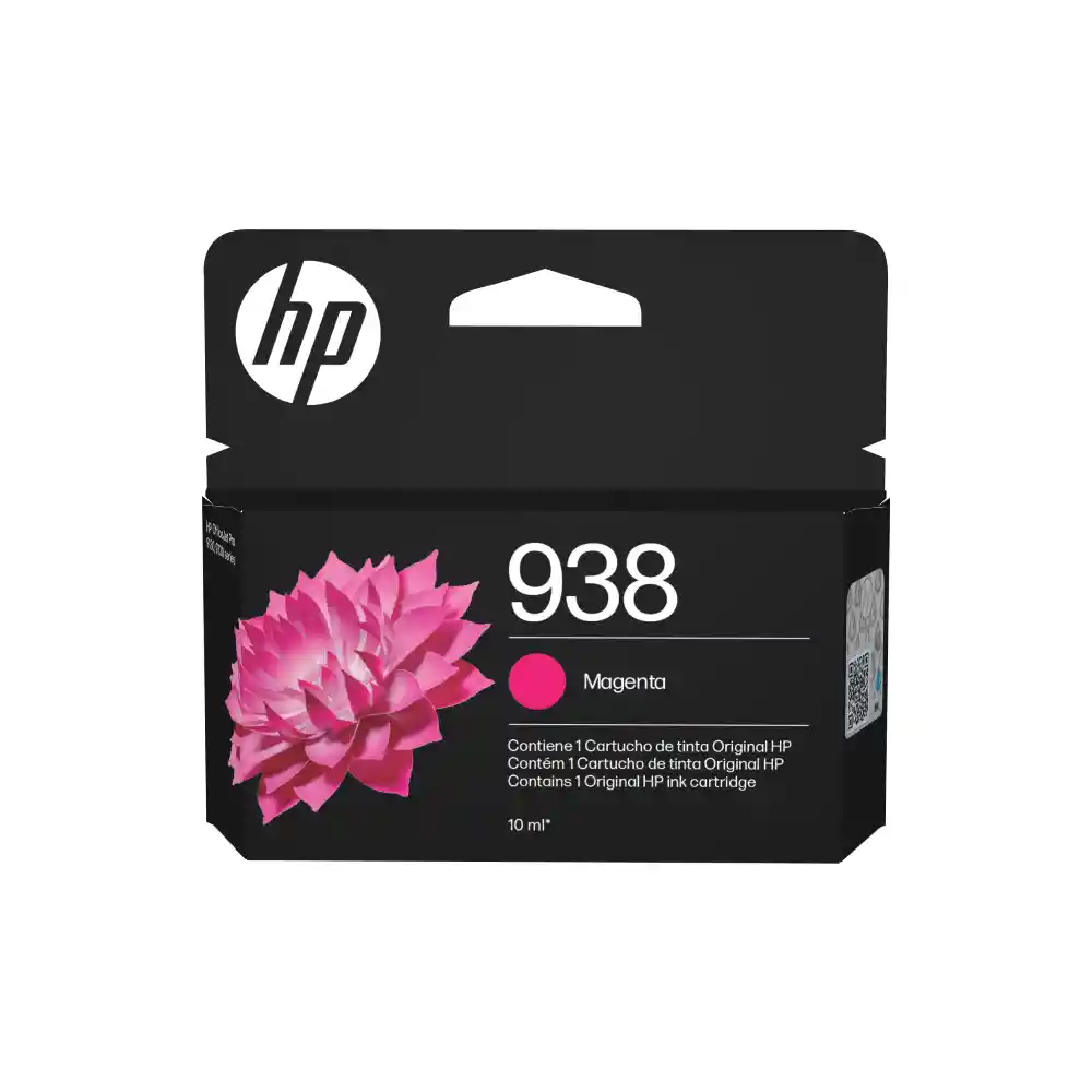 Cartucho de tinta HP 938 Magenta original (4S6X6PA)\n\nCompatibilidad con hardware: HP OfficeJet Pro 9110, HP OfficeJet Pro 9120, HP OfficeJet Pro 9130, HP OfficeJet Pro 9720, HP OfficeJet Pro 9730 \n\nRendimiento: Hasta 800 páginas Volumen cartucho impresión: 10ml Colores de impresión: Magenta: Subgrupo de producto: Cartuchos de tinta de capacidad estándar