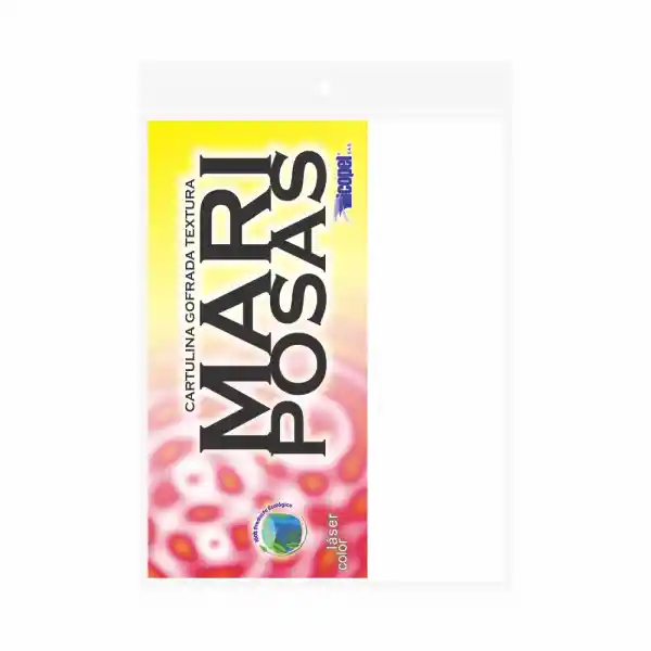 Cartulina Gofrada Mariposa Icopel Carta Cartulina Extra Blanca. Elevada Blancura y Rigidez. Óptimos Resultados de Impresión, la Blancura Resalta Los Contrastes. Garantizado Para Láser & Inkjet. Elaborada Con Celulosa Ecf (Libre de Cloro) Ph Neutro. Gramaje 180 g. Presentación Bolsa 50 Hojas.