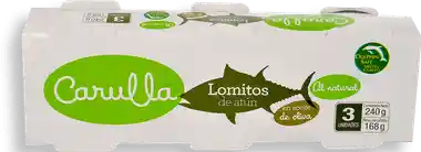 Lomito de atún en aceite de oliva al natural contiene 3 unidades X 240 g cada uno. Packing: Caja