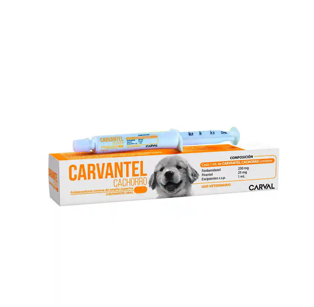 Carvantel cachorro para perros es un antiparasitario de amplio espectro diseñado para el control eficaz de parasitosis gastrointestinales en perros cachorros. Este producto actúa contra nematodos, cestodos y protozoos, garantizando una protección integral para tu mascota.