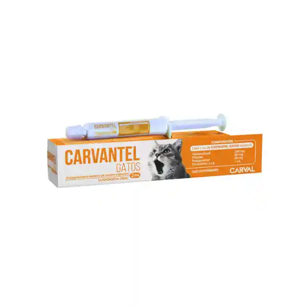 Carvantel Suspensión Oral es un antiparasitario de amplio espectro diseñado para combatir infestaciones gastrointestinales en gatos. Es altamente efectivo contra nematodos, cestodos y protozoos, impidiendo que los parásitos afecten la salud de su mascota. La presentación en jeringa de 2 ml facilita su administración directa en la boca del animal. Eficaz contra una amplia variedad de parásitos Fácil de administrar gracias a su presentación en jeringa Protege la salud gastrointestinal de los gatos Permite romper el ciclo de infestación parasitaria