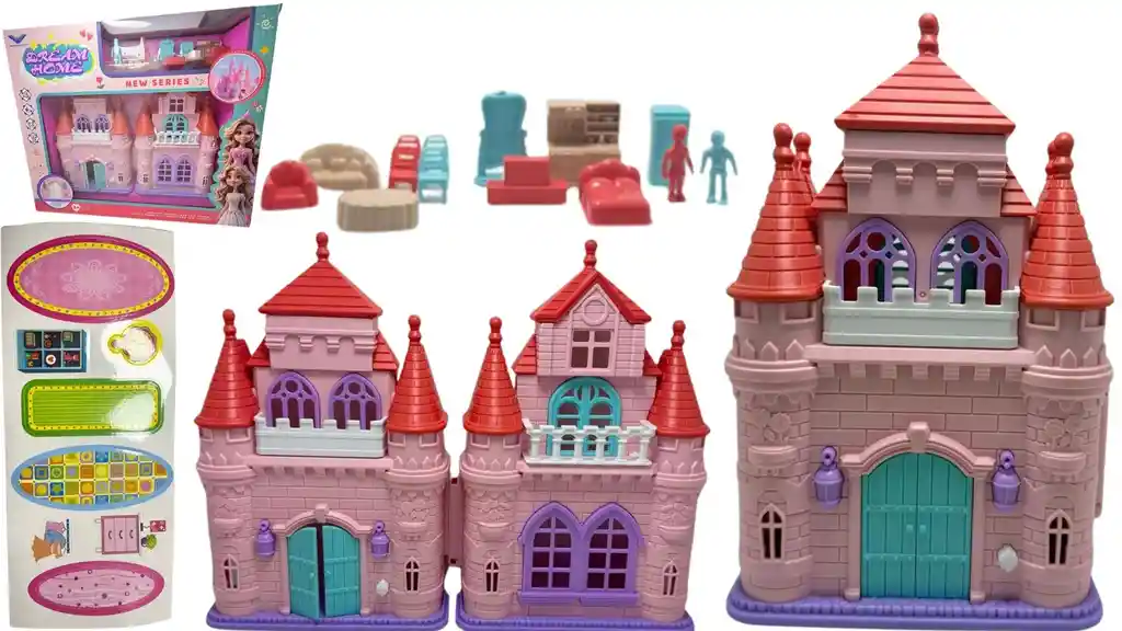 Referencia: 1383 Este castillo es el juguete ideal para que las niñas den rienda suelta a su imaginación. Cuenta con puertas, ventanas y detalles encantadores, además incluye muebles y personajes en versión mini para crear horas de juego creativo y de fantasía. CARACTERÍSTICAS: Castillo tipo casa de muñecas Incluye accesorios versión mini Material: Plástico resistente Ideal para juego simbólico y creativo Apto para niñas a partir de 3 años MEDIDAS DEL CASTILLO: 12.5 cm de largo x 19 cm de alto ¿Qué incluye el producto? 1 Mesa de noche con televisor 1 Cama 1 Espejo 4 Sillas 1 Cocina 1 Refrigerador 2 Muñequitos El castillo puede abrirse y acomodarse con los accesorios incluidos, permitiendo que las niñas decoren y organicen el espacio como prefieran. Es un juguete ideal para estimular la creatividad, la narración de historias y el juego libre. ZZZZZZZZZZZZZZZZZZZZZZZZZZZZZZZZZZZZZZZZZZZZZZZZZZZZZZZZZZZZZZZZZZZZZZ MÁS DETALLES: Condición: Nuevo MAS INFORMACIÓN DE NOSOTROS Somos INVERSIONES MAZUGI. Importadores directos desde China. Cumplimos con distribución a nivel nacional. Estamos ubicados en Bogotá, somos tienda virtual y física. PRODUCTOS AL POR MAYOR Y DETALLE. Somos una empresa importadora y comercializadora de productos de alta calidad en categorías como: belleza, tecnología, hogar, juguetería, cuidado personal, entre otras.