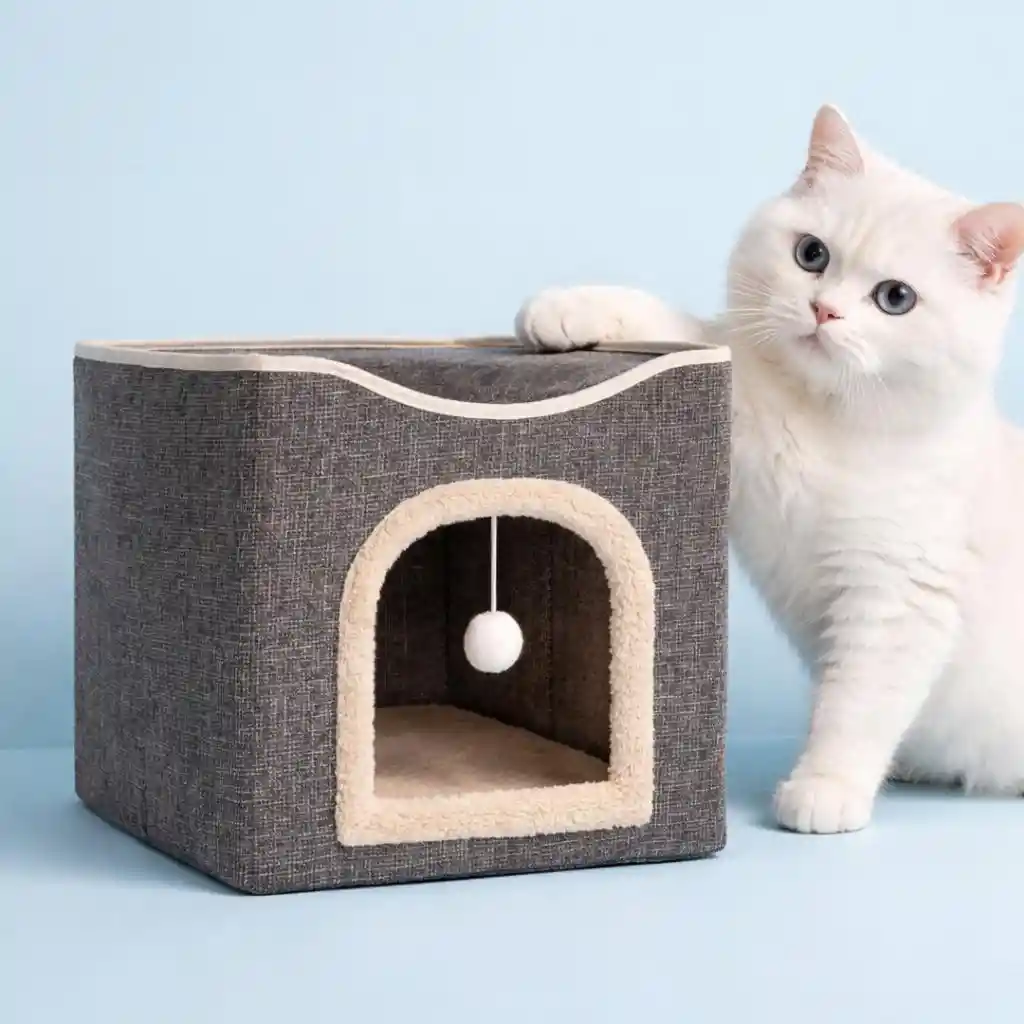 Dale a tu gato un espacio exclusivo de descanso y entretenimiento con el Refugio Felino Elevon, un diseño elegante que combina comodidad, privacidad y diversión en un solo producto. #t Beneficios principales: * Te 2 en 1: casa acogedora + rascador integrado * ∞» Promueve el instinto natural de rascar y jugar * ¿ Espacio ideal para descansar y sentirse seguro * O Material resistente у duradero Diseño moderno que combina con tu hogar * Perfecto para gatos que aman esconderse, relajarse y afilar sus uñas sin dañar tus muebles. Características: * Tamaño ideal para gatos pequeños y medianos * Estructura firme y estable * Fácil de ubicar en cualquier espacio del hogar * Ideal para: Gatos curiosos, juguetones o que buscan su propio espacio de tranquilidad.
