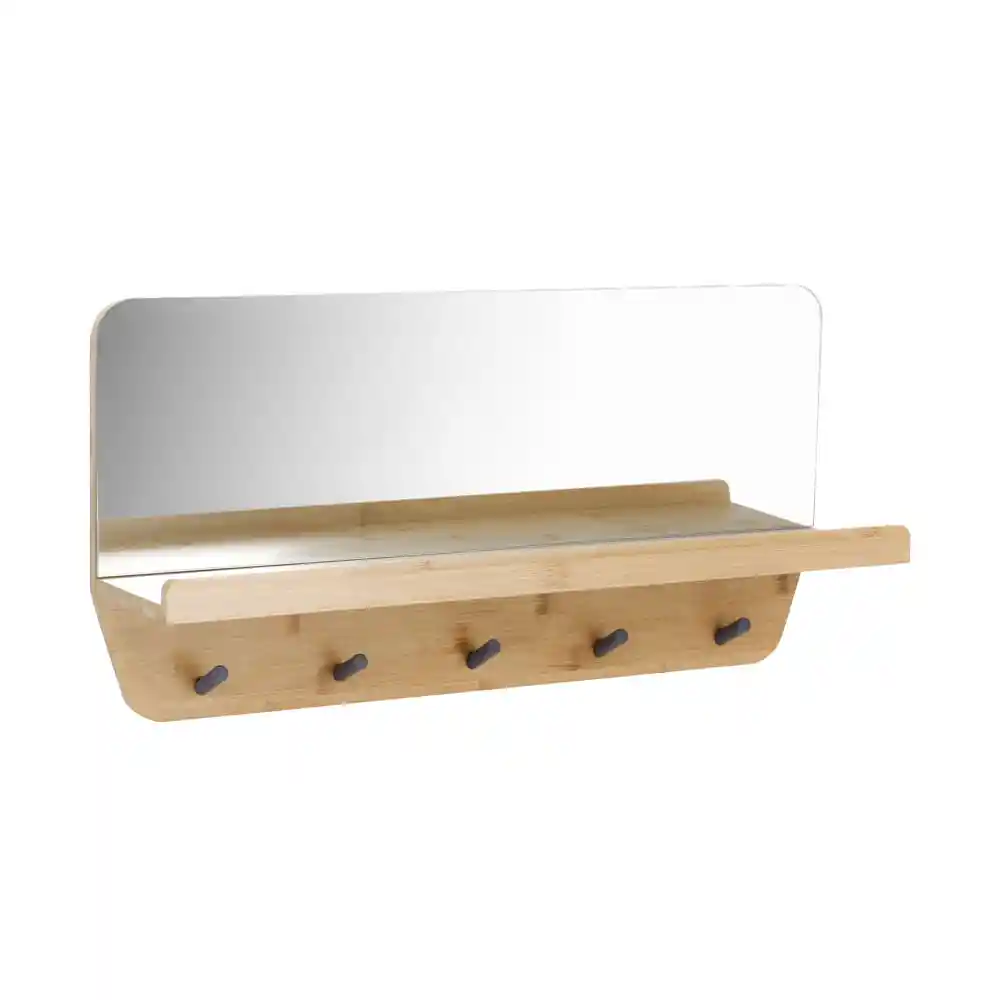 Espejo Con Repisa de Madera de Bambú y 5 Perchas Para Colgar Este Producto Resiste Hasta 5 Kg y Requiere Armado (Incluye Instrucciones). Medidas: Largo: 315 cm. Ancho: 60 cm. Profundidad: 14 cm. Composición: Bambú y Espejo. Cuidados: Limpiar Con Paño Húmedo. ''En Casaideas Encontrarás Artículos de Diseño Para Vivir Día a Día en un Espacio Que te Haga Feliz.''