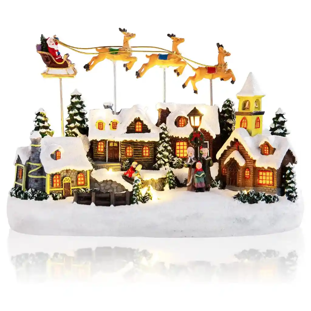 La Aldea Navideña Chonsun es una decoración diseñada para llenar el hogar de espíritu navideño con luz, música y movimiento. Su estructura está compuesta por una escena detallada de un pueblo nevado con casas iluminadas, árboles decorativos y una torre central con reloj giratorio. Papá Noel, acompañado de su alce, atraviesa el paisaje animado, dando vida a una presentación que destaca tanto por su estética como por su dinamismo. Las luces LED cálidas proporcionan un brillo armonioso que resalta las figuras decorativas, mientras que su sistema musical reproduce ocho melodías tradicionales para ambientar reuniones familiares, cenas navideñas o espacios decorativos. Con dos modos de uso (luces solas o luces con música), esta pieza se adapta a cualquier ambiente, ya sea festivo o tranquilo. Fabricada en resina premium, está diseñada para durar y mantener su apariencia impecable cada temporada. Gracias a su doble sistema de alimentación, puede colocarse sin restricciones incluso lejos de enchufes, lo que la convierte en una opción ideal para salas, habitaciones, repisas o escritorios. Especificaciones Dimensiones: 25 × 20 × 15 cm aproximadamente Material: Resina Iluminación: LED cálida Movimiento: Torre con reloj giratorio + desplazamiento decorativo de Papá Noel Música: 8 villancicos navideños Modos disponibles: Solo luces o luces + música Alimentación: 3 pilas AA (no incluidas) o cable USB (incluido) Peso aproximado: 1.1 kg Uso recomendado: Decoración interior Garantía y Retracto de Compra Garantía de 30 días por defectos de fábrica. Retracto de compra disponible durante 5 días hábiles, según políticas de la empresa.