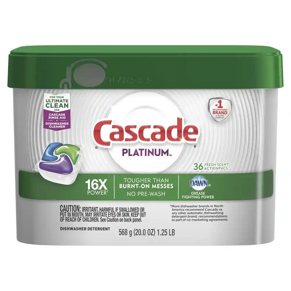 No se necesita prelavado: el detergente en cascada Platinum elimina los alimentos quemados sin prelavadoActionPacs se formulan con el poder de lucha contra la grasa de jabón de plato DawnNuestro Action Pac triple cámara es lo suficientemente resistente como para terminar de limpiar incluso su quemado en líos sin pre-lavado.# 1 Marca recomendada en América del NorteMás marcas de lavavajillas en América del Norte recomiendan Cascade frente a cualquier otra marca de detergente para lavavajillas automático, las recomendaciones como parte de los acuerdos de comercialización conjuntaEl mejor detergente para lavavajillas de Cascade mantiene su acabado chispeante de cubiertos y lavavajillas