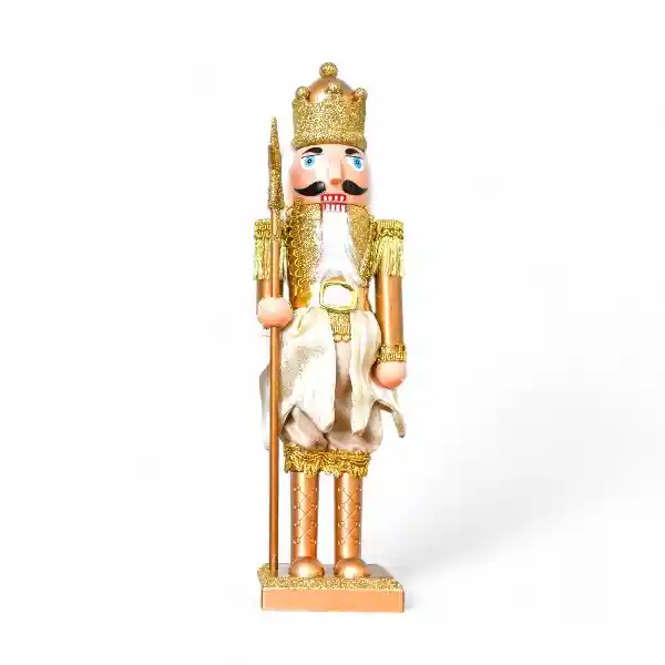 Cascanueces con trajes de tela de color dorado y blanco. 38CM