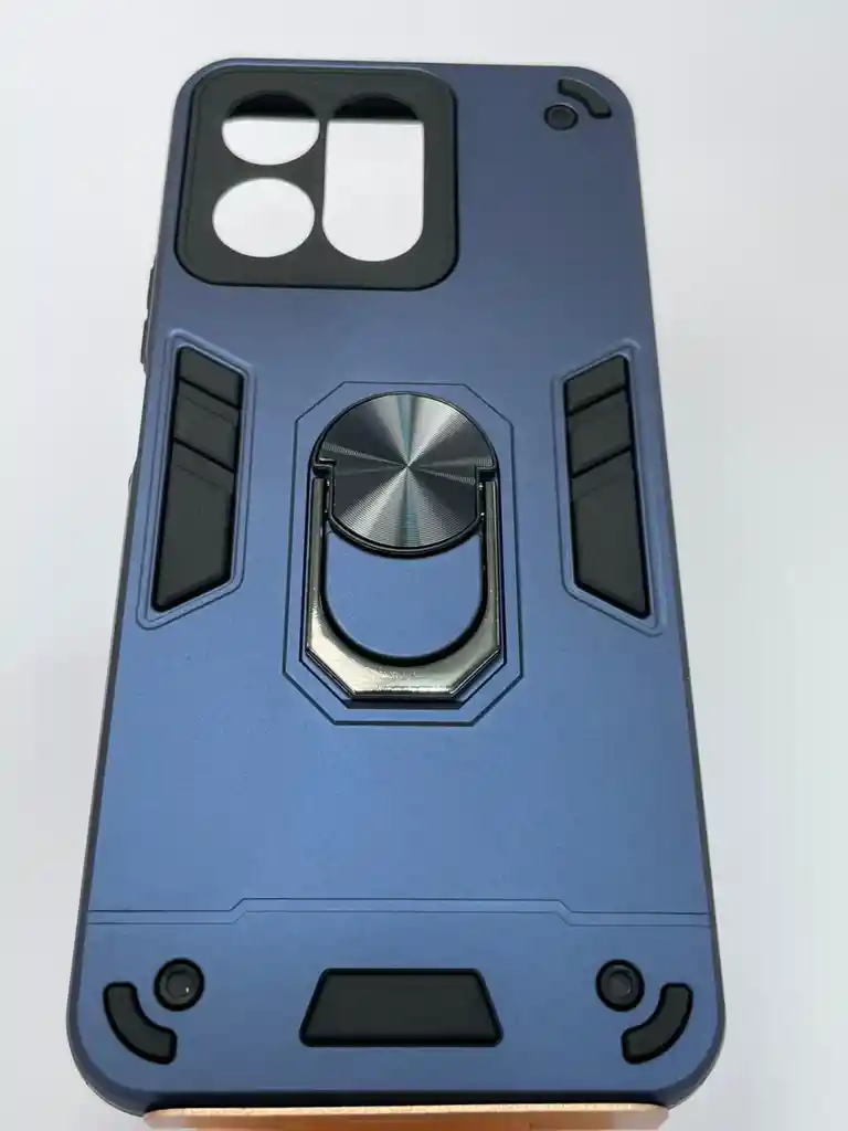 Funda protectora antigolpes para smartphone • Diseño robusto y moderno, ideal para uso diario • Material de doble capa (TPU + policarbonato) de alta resistencia • Soporte metálico giratorio 360° integrado (ring holder) • Función de soporte horizontal y vertical para ver videos • Compatible con soportes magnéticos para auto • Bordes reforzados y esquinas con absorción de impactos • Protección elevada para cámara y pantalla • Acabado mate antideslizante, resistente a huellas • Botones protegidos con respuesta táctil precisa • Accesos exactos a puertos y altavoces • Estilo elegante en color azul, unisex