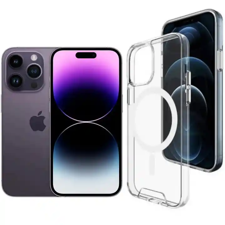 Estuche Magnético transparente con MagSafe y los bordes superior e inferior del marco de TPU se elevan 0,4 mm por encima de la parte posterior de la pc (policarbonato) para que no se raye cuando se coloca el teléfono boca arriba. Protección La fusión de dos materiales cualitativos: TPU suave y plástico duro fusionados en una capa resistente, no solo brindan una gran protección, sino que también permiten que la carcasa mantenga su apariencia transparente durante mucho tiempo.