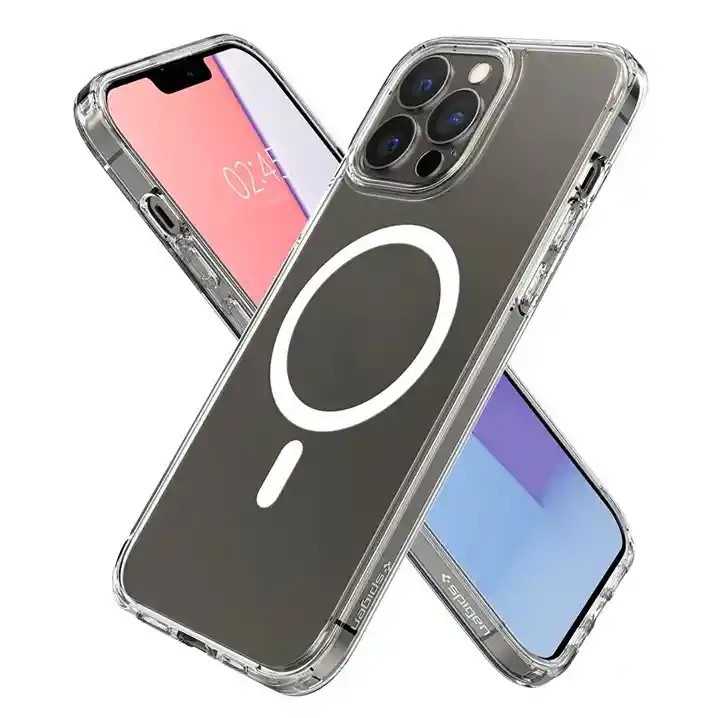 Estuche Magnético transparente con MagSafe y los bordes superior e inferior del marco de TPU se elevan 0,4 mm por encima de la parte posterior de la pc (policarbonato) para que no se raye cuando se coloca el teléfono boca arriba. Protección La fusión de dos materiales cualitativos: TPU suave y plástico duro fusionados en una capa resistente, no solo brindan una gran protección, sino que también permiten que la carcasa mantenga su apariencia transparente durante mucho tiempo.