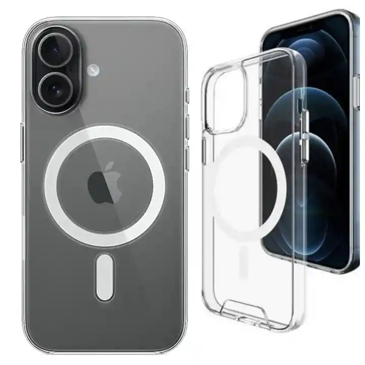 Estuche Magnético transparente con MagSafe y los bordes superior e inferior del marco de TPU se elevan 0,4 mm por encima de la parte posterior de la pc (policarbonato) para que no se raye cuando se coloca el teléfono boca arriba. Protección La fusión de dos materiales cualitativos: TPU suave y plástico duro fusionados en una capa resistente, no solo brindan una gran protección, sino que también permiten que la carcasa mantenga su apariencia transparente durante mucho tiempo.