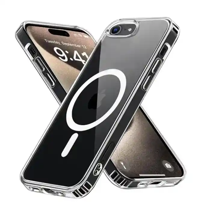Estuche Magnético transparente con MagSafe y los bordes superior e inferior del marco de TPU se elevan 0,4 mm por encima de la parte posterior de la pc (policarbonato) para que no se raye cuando se coloca el teléfono boca arriba. Protección La fusión de dos materiales cualitativos: TPU suave y plástico duro fusionados en una capa resistente, no solo brindan una gran protección, sino que también permiten que la carcasa mantenga su apariencia transparente durante mucho tiempo.