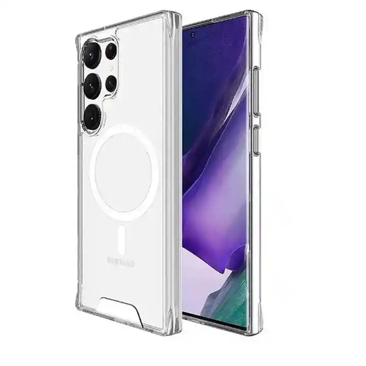 Estuche Magnético transparente con MagSafe y los bordes superior e inferior del marco de TPU se elevan 0,4 mm por encima de la parte posterior de la pc (policarbonato) para que no se raye cuando se coloca el teléfono boca arriba. Protección La fusión de dos materiales cualitativos: TPU suave y plástico duro fusionados en una capa resistente, no solo brindan una gran protección, sino que también permiten que la carcasa mantenga su apariencia transparente durante mucho tiempo.
