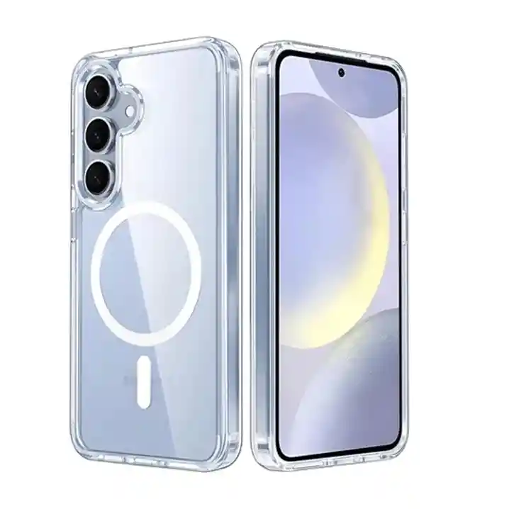 Estuche Magnético transparente con MagSafe y los bordes superior e inferior del marco de TPU se elevan 0,4 mm por encima de la parte posterior de la pc (policarbonato) para que no se raye cuando se coloca el teléfono boca arriba. Protección La fusión de dos materiales cualitativos: TPU suave y plástico duro fusionados en una capa resistente, no solo brindan una gran protección, sino que también permiten que la carcasa mantenga su apariencia transparente durante mucho tiempo.