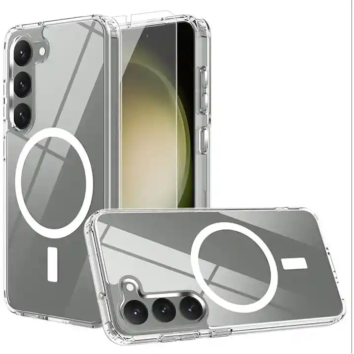 Estuche Magnético transparente con MagSafe y los bordes superior e inferior del marco de TPU se elevan 0,4 mm por encima de la parte posterior de la pc (policarbonato) para que no se raye cuando se coloca el teléfono boca arriba. Protección La fusión de dos materiales cualitativos: TPU suave y plástico duro fusionados en una capa resistente, no solo brindan una gran protección, sino que también permiten que la carcasa mantenga su apariencia transparente durante mucho tiempo.