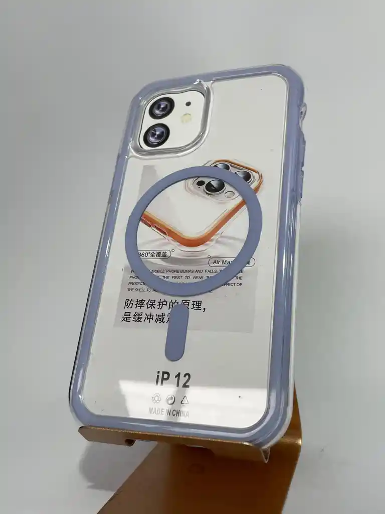Funda transparente con aro magnético para iPhone 12 12 Pro • Compatible con iPhone 12 12 Pro • Aro magnético integrado tipo MagSafe para carga y accesorios magnéticos • Diseño transparente que resalta el color original del equipo • Bordes en TPU flexible para mejor absorción de impactos • Parte trasera rígida en PC resistente • Protección 360° contra golpes y caídas • Esquinas reforzadas (Airbag) para mayor seguridad • Bordes elevados que protegen cámara y pantalla • Ajuste preciso a botones y puertos • Material ligero y antideslizante • Color del borde: azul claro • Fácil de instalar y retirar