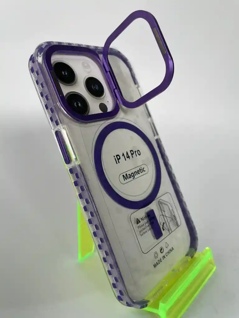 *Funda MagSafe Transparente con Borde MORADO* 🖤 y Soporte Metálico Perfecto para ver tus series favoritas Elegancia y protección en una sola funda ✨ Diseñada para tu iPhone, con *borde MORADO* y parte trasera transparente que deja ver el color original del equipo 🔥 📱 *Modelo:* iPhone 14 PRO 🧲 *Compatibilidad:* MagSafe (cargadores y accesorios magnéticos) 💎 *Material:* TPU premium 🛡️ *Protección:* Antigolpes, anti-rayones y con bordes elevados Moderna, resistente y con estilo — ¡la funda que tu iPhone merece! ⚡