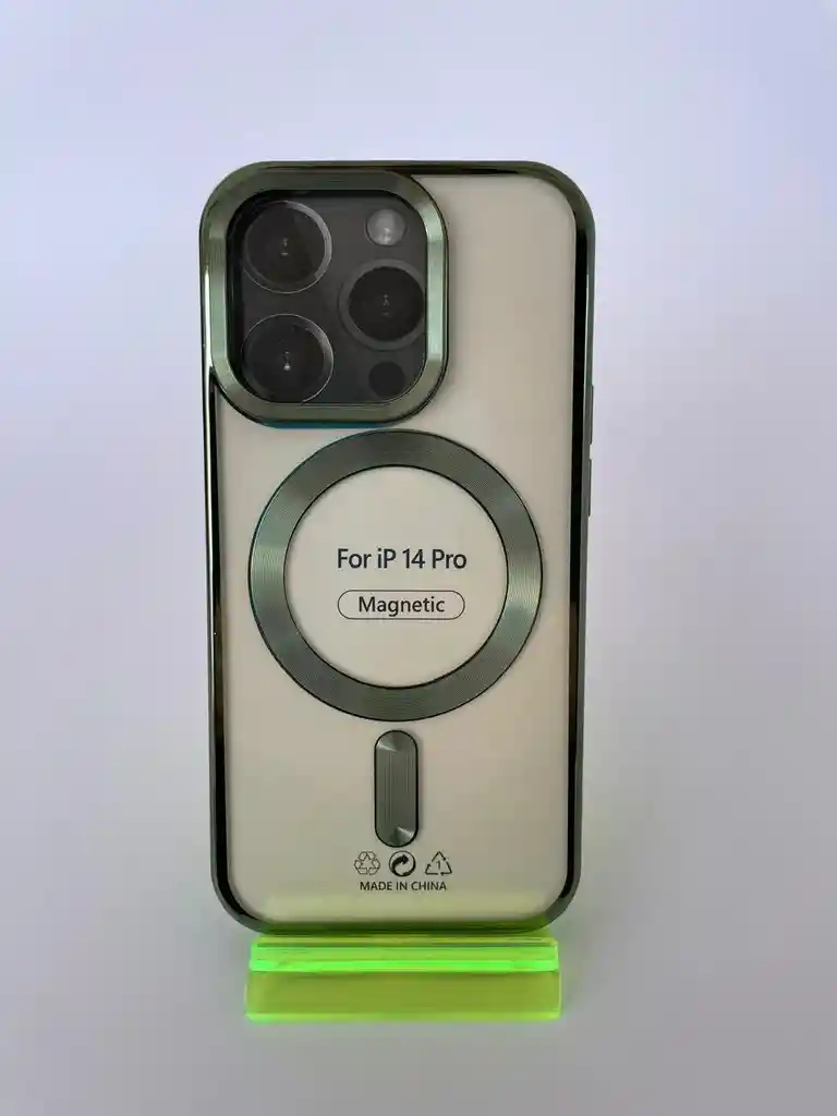 Estuche Borde De Color, con MagSaf, Este estuche no cuenta con protectores de camaras. Material del Estuche: Acrílico borde TPU Color VERDE ESMERALDA BRILLANTE