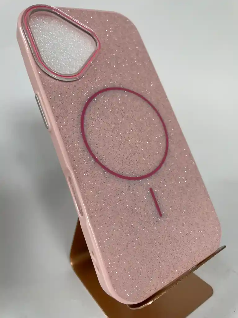 Funda rosada con brillo y aro magnético Características: • Material: TPU flexible con acabado brillante y escarchado. • Diseño: Color rosado con efecto glitter y aro magnético integrado. • Compatibilidad: Modelos de iPhone 17 (según tamaño del módulo de cámara). • Protección: • Borde elevado para mayor seguridad de cámara y pantalla. • Esquinas reforzadas con absorción de impactos. • Resistente a rayones y caídas. • Funcionalidad: • Compatible con carga inalámbrica y accesorios MagSafe. • Ajuste preciso en botones, puertos y cámara. • Estilo: Elegante, moderno y femenino con acabado brillante. • Color disponible: Rosa con destellos plateados.