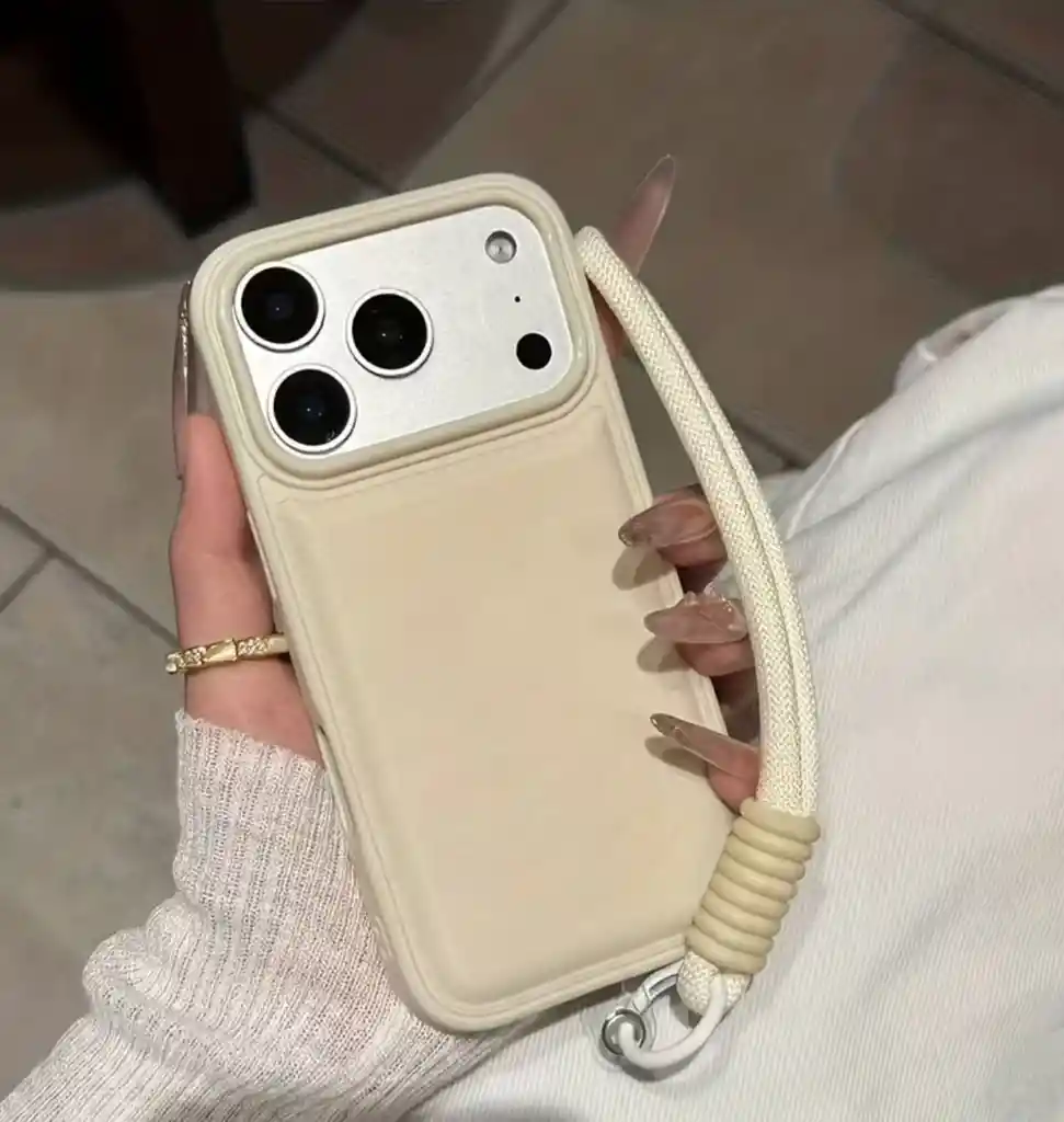 CASE LUJO CON STRAP BEIGE IPHONE 17PM