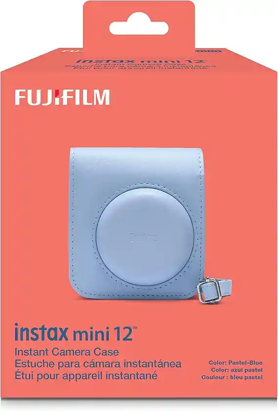 Se adapta a cualquier cámara instantánea INSTAX Mini 12. Diseño elegante y elegante con correa de hombro reforzada y ajustable Ligero, compacto y duradero Costuras tono sobre tono Logotipo INSTAX grabado