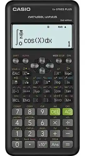 CARACTERÍSTICAS DEL PRODUCTO-Marca: Casio-Modelo: FX-570ES-PLUS-Tipo de producto: calculadora científica-Uso: educación básica, media y superior-Pantalla natural V.P.A.M-Pantalla de matriz de puntos-15 + 10 + 2 dígitos-417 funciones-Resolución de ecuaciones-20 pares de valores para conversiones métricas-Cálculo con números complejos-Cálculo de funciones con la tecla Cal (memoria temporal de fórmulas)-40 constantes científicas-Cálculo vectorial y de matrices-Cálculo numérico de integrales / cálculo diferencial-Números enteros aleatorios-Nuevo modo de ecuaciones-Tabla de funciones-Batería-Respuestas múltiples-24 niveles de paréntesis-Memoria variable (7)-tecla STO/RCL-417 funciones-Pantalla: pantalla natural de libro de texto con sistema V.P.A.M.-Peso: 100 gr-Garantia 1 año-Dimensiones-Alto 16,2 cm-Ancho 8 cm-Profundidad 1,38 cm