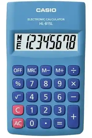 Tipo Portátil 8 dígitos Cálculos de porcentaje regular. Pantalla de gran tamaño que permite una fácil lectura. Peso : 65g Dimensiones (Pr. x An. x Al.) : 118×69,5×18mm