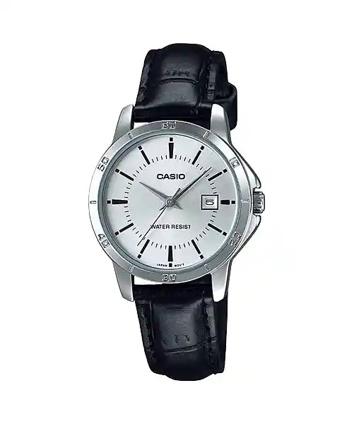 Caja Ion Plata. Pulso Cuero. Resistente Salpicaduras. Funciones Clásicas de Reloj. Indicador de Fecha