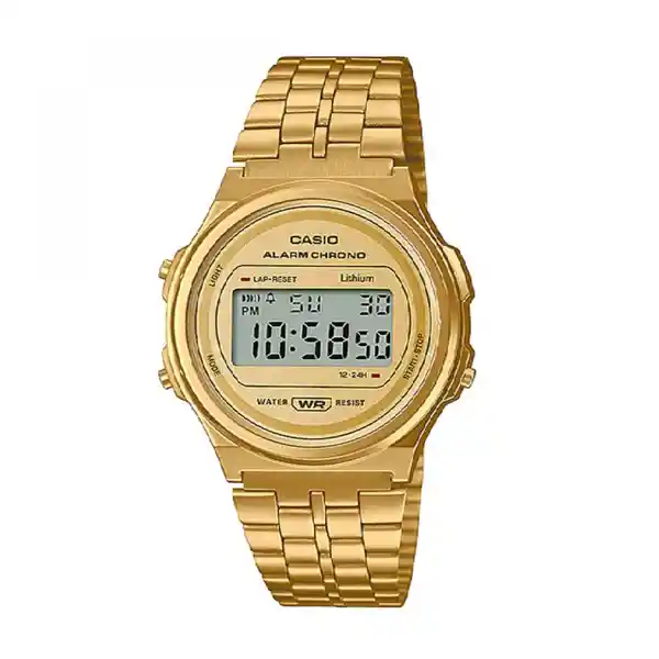 Reloj Casio A171Weg9Adf Para Hombre Medida de la Caja 37 (mm) de Acero Medida Del Pulso (mm) de Acero Inoxidable Color Dorado Pulso de (mm) Resistencia al Agua Hasta 10 (Metros) 24 Meses de Garantia Por Defecto de Fabrica