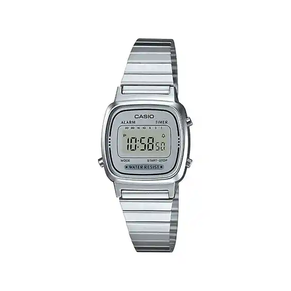 Reloj Casio La670Wa7Df Para Hombre Medida de la Caja 30 (mm) de Acero Inoxidable Medida Del Pulso 15 (mm) de Acero Inoxidable Color Plateado Pulso de 15 (mm) Resistencia al Agua Hasta 30 (Metros) 24 Meses de Garantia Por Defecto de Fabrica