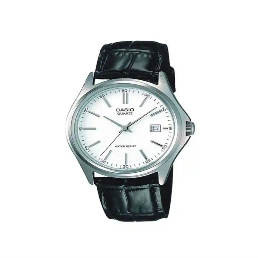 Caja Ion Plata. Pulso Cuero. Resistente Salpicaduras. Funciones Clásicas de Reloj. Indicador de Fecha