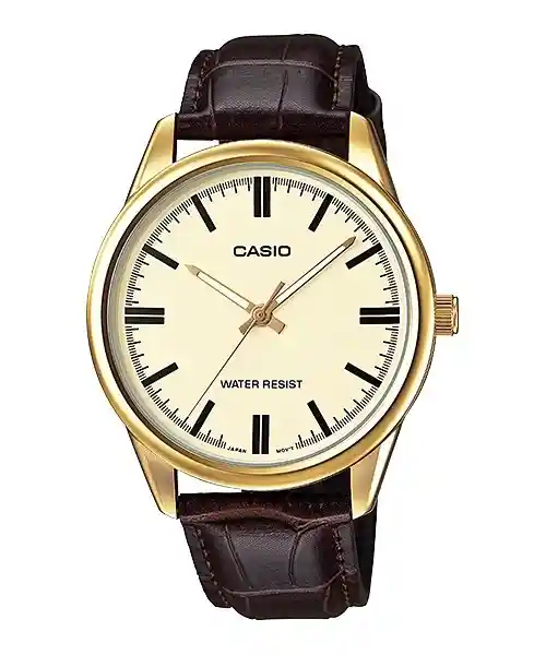Reloj Casio Modelo Mtp_V006 gl_7B Para Hombre Color Marrón de Cuero Resistencia al Agua Hasta 30 m > Género: Hombre > Marca: Casio > Modelo: Mtp_V006 gl_7B > Color Principal: Marrón > Material Principal: Cuero > Colección: Casio Fashion Mtp > Tono Caja: Dorado > Material Caja: Acero Inoxidable > Color Tablero: Blanco > Material Cristal: Mineral > Ancho Banda: 18 mm > Largo Banda: 160 - 220 mm > Resistencia al Agua: 30 m > Tamaño Caja: 38 mm > Tipo Reloj: Análogo > Calendario: Si > Forma Reloj: Circular > Tipo Movimiento: Cuarzo > Tipo Cierre: Hebilla > País: Japan Garantía Ofrecemos Una Garantía de 2 Años Por Defectos de Fábrica en la Maquinaria. La Batería Tiene Garantía de 1 Año. No Aplica Para Garantía: - Cristal Pulso - Los Daños Que Resulten de un Mal Manejo de la Pieza Accidentes o Por el Uso Normal de la Pieza la Garantía se Pierde Cuando el Daño de la Pieza es Por Accidente Negligencia Servicio Técnico no Autorizado y Otros Factores Que no Estén Relacionados al Material o a la Fabricación.