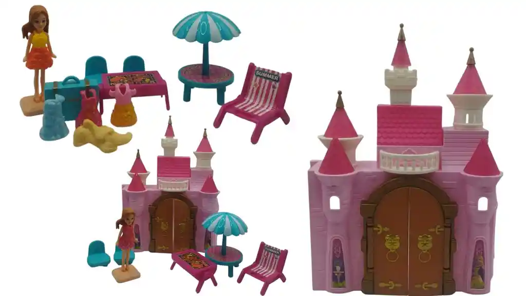 Producto: Castillo con Accesorios Travel Holiday REF: SG-2909AB Color: Rosado Descripción del producto: Hermoso set de castillo para niñas con diseño tipo princesa, ideal para estimular la imaginación y el juego creativo. Este juguete incluye una estructura de castillo colorido y llamativo acompañado de una muñeca y múltiples accesorios que permiten recrear diferentes escenarios de juego. Perfecto para desarrollar la creatividad, la coordinación mano-ojo y las habilidades sociales, ya que los niños pueden inventar historias, decorar espacios y cambiar los accesorios de la muñeca. Su diseño detallado y colores atractivos lo convierten en un regalo ideal para cualquier ocasión. El castillo cuenta con puertas, torres y accesorios como muebles y complementos decorativos, brindando una experiencia de juego más completa y divertida. CARACTERÍSTICAS: Diseño de castillo tipo princesa Incluye muñeca y accesorios Colores llamativos (rosado predominante) Material resistente 26 cm de Alto x 20 cm de Largo (medidas aproximadas) Condición del producto: Nuevo ¿QUÉ INCLUYE TU PRODUCTO? 1 Castillo de juguete 1 Muñeca Accesorios (muebles, sombrilla, sillas, ropa adicional y decoración) Juguete ideal para estimular la imaginación Perfecto como regalo para niñas MMMMMMMMMMMMMMMMMMMMMMMMMMMMMMMMMMMMMMMMMMMMMMMMM MÁS DETALLES: Condición: Nuevo MAS INFORMACIÓN DE NOSOTROS Somos INVERSIONES MAZUGI. Importadores directos desde china Cumplimos con distribuir a todo el país. Estamos ubicados en Bogotá, somos tienda virtual y física PRODUCTOS AL POR MAYOR Y DETALLE Somos una empresa importadora y comercializadora de productos de Alta Calidad de varias categorías como: belleza, tecnología, hogar, juguetería, cuidado personal, entre otras.