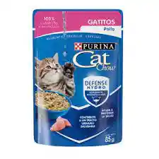 CAT CHOW® Defense Hydro® Gatitos sabor pollo es un alimento húmedo completo y balanceado para gatos en crecimiento de 1 a 12 meses de edad de todas las razas. Purina® Cat Chow® cree que una buena nutrición es clave para proteger la salud de los gatos.
