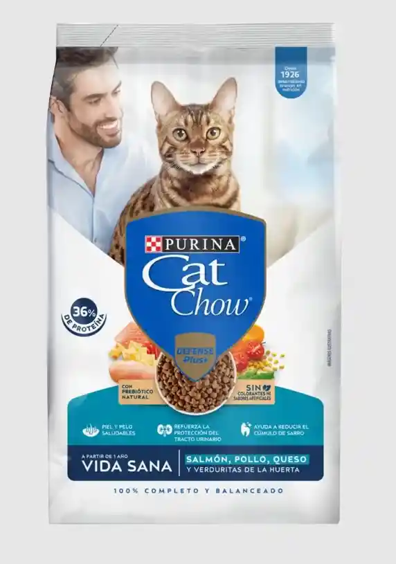 Con PURINA® CAT CHOW®, construyes un escudo de protección alrededor de tu gatotodos los días, mientras él disfruta de su delicioso sabor. Protección para una vida mejor. Una buena nutrición es fundamental para proteger la salud de los gatos. Es por eso que desarrollamos PURINA® CAT CHOW® con DEFENSE PLUS, elaborado con una selección de ingredientes naturales y mejorado con la inclusión de un prebiótico natural. Defense Plus, una combinación exclusiva de prebiótico natural, antioxidantes, vitaminas y minerales que ayudan a fortalecer las defensas naturales de tu gato. Esto ayudará a promover un sistema inmune fuerte para proteger su estilo de vida único.