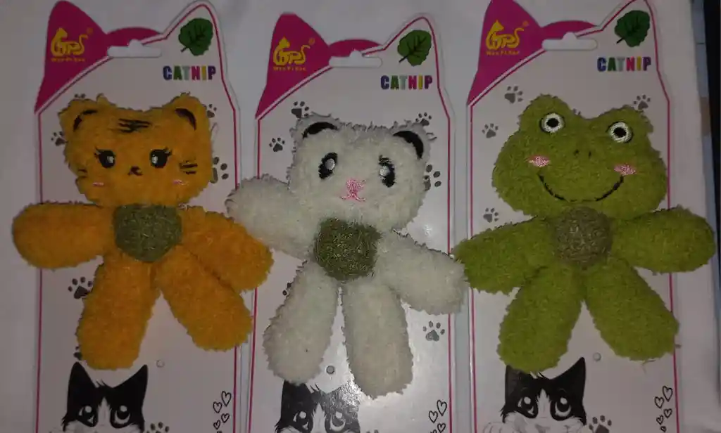 3 lindos diseños de peluche elaborados en toalla con centro cat nip, para divertir a tu gatito y brindarle relajación